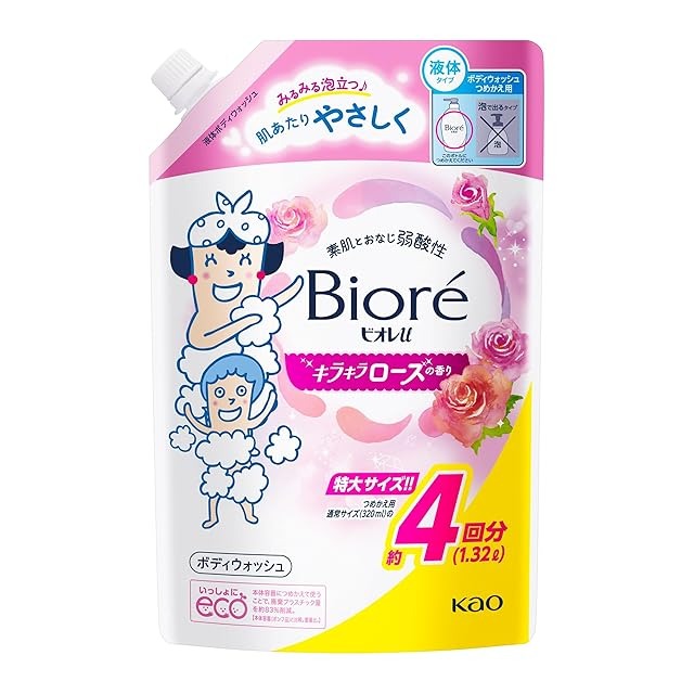 【商品概要】 華やか気分 キラキラローズの香り。 【商品詳細】 ブランド:ビオレu 商品種別:ボディソープ 商品名:ビオレu ボディソープ キラキラローズの香り つめかえ用 1.32L 弱酸性 赤ちゃんの肌にも使える 製造元:花王 発売日:2025年09月15日 色:ホワイト 梱包サイズ:54.4cm