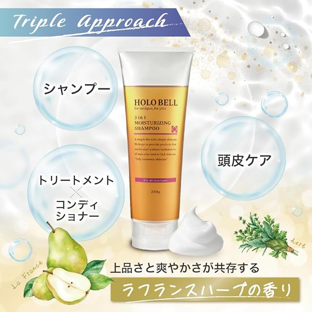 商品名:HOLO BELL 3in1 メンズ スカルプ 保湿 シャンプー ホロベル 頭皮ケア 無添加 濃密泡 ノンシリコン 弱酸性 ラフランスハーブの香り 250g
