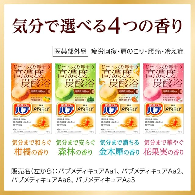 商品名:バブ メディキュア 花果実の香り 6錠入 高濃度 炭酸 温泉成分 (泡の数バブの10倍)