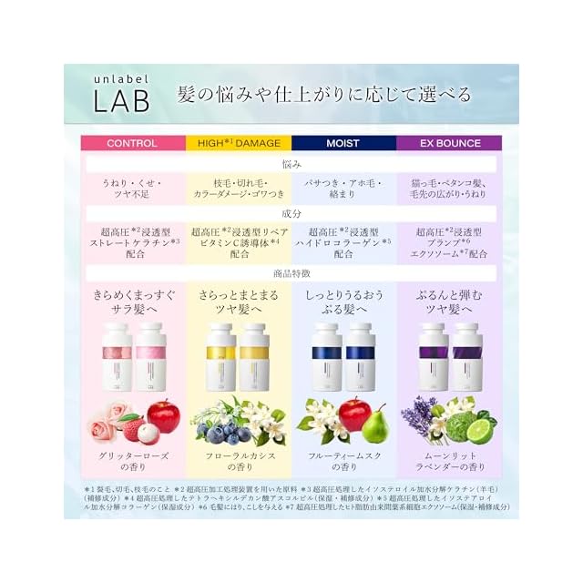 スキンケアで培われたアンレーベルの超高圧※1浸透テクノロジーで大人のうねり髪・ツヤ不足に集中アプローチ。