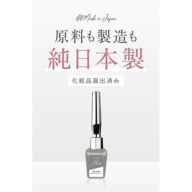 シールみたいに剥がせるピールオフ専用のベースジェルです。<br> 従来品では望めなかったモチの良さ、ペロンと剥がせる商品にこだわり、専用の柔らかい粘着性のある新たな日本製原料を開発し、リフトしづらい、だけど爪を傷めずにきれいに剥がせるベースジェルとなりました。<br><br> <こんな方におすすめ!><br> ・手軽にジェルネイルを楽しみたい方<br> ・週末だけネイルを楽しみたい方<br> ・ジェルネイルで爪が傷んだ方<br> ・ピールオフタイプのジェルで自爪が薄くなった方<br> ・ピールオフタイプのジェルでオフが難しいと感じた方<br><br> 一般的なピールオフタイプのベースは剥がした後もベタつきが残ったり、きれいに剥がすことが出来ないため爪とジェルとの間にエタノールやリムーバー、キューティクルオイル等を併用する必要がありました。<br> ピールベースはこういった液体を使用せずにきれいにオフができるのでこれだけで完結することができます。<br><br> また無理やり剥がすことにより自爪が薄くなったり、二枚爪の原因になることもありますが、ピールベースは専用の原料を使用しているため、あとも残らずきれいに剥がすことができます。<br> さらに爪が乾燥せず傷まない・オフ後のべたつきも残りません。爪が傷むことが心配な方にも安心してお使いいただくことが可能です。<br><br> 適度な粘性なので塗りやすく操作性も◎<br> ブラシは好評のラウンド型を採用しており、キャップ部分も長くため従来のポリッシュタイプより持ちやすく使いやすいデザインとなっています。<br><br> ピールベースは、純日本製の安心感と使いやすさにこだわったベースジェルです。<br> ジェルネイルが初めての方から上級者まで幅広くご愛用いただけます。<br><br> <使用方法><br> 1)エタノールで爪表面を清潔にし、油分を取り除きます。キワまでしっかり拭いましょう。<br> 2)ピールベースを爪表面に塗布し、ランプ(別売り)で60秒照射し硬化します。<br> 3)未硬化ジェル(表面のべたつき)は拭き取らずにカラージェル、トップジェルで仕上げます。<br><br> <持ちをよくするために><br> ●ピールベースは薄塗りではなくたっぷりめに塗ります。<br> ●エッジ(爪の先端)には塗らないようにしてください。<br> ●ブラッシュオンスーパーベース(別売り)を先端に塗ってからピールベースを使用すると、より長く持たせることができます。<br><br> <仕様> ●カラー:クリア<br> ●日本製・爪化粧料<br> ●硬化時間の目安:LED36W、16W、8W、6W(シャイニージェル製)・・・60秒<br><br> ※こちらは単品ではご使用できません。別途硬化用ランプをご用意下さい。<br /> ●爪以外には使用しないで下さい。<br /> ●アレルギー体質の方、爪に異常がある方は使用しないで下さい。<br /> ●爪や皮膚に異常が現われた時は仕様をやめ、皮膚科専門医などにご相談下さい。<br /> ●高温や紫外線をさけて保管して下さい。<br /> ●幼少児の手の届かないところに保管して下さい。