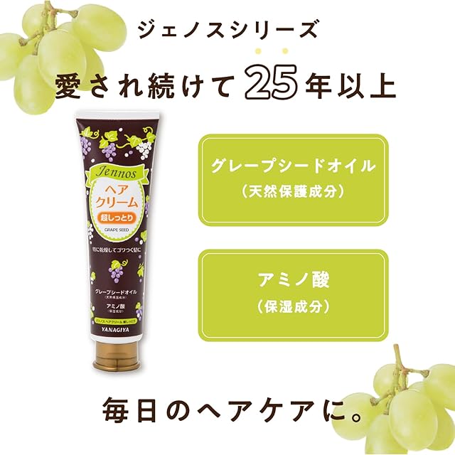 グレープシードオイル・アミノ酸配合、髪のうるおいを長時間キープする超しっとりヘアクリーム。