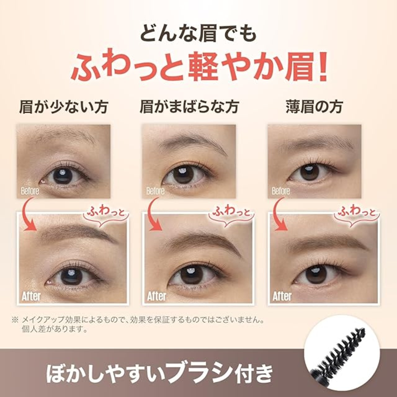 パウダーのようなふんわり自然な仕上がりをキープ。自眉毛を活かしたメイクに最適。