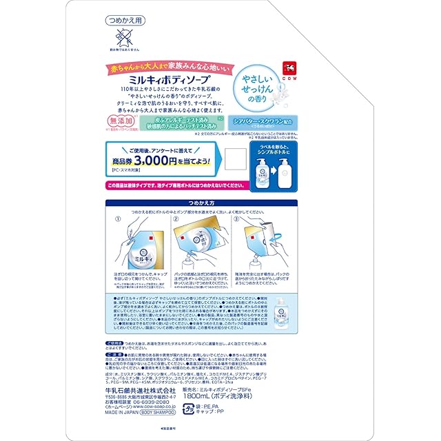 商品名:ミルキィボディソープやさしいせっけん 詰替 1800ML