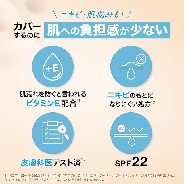 SPF22の日焼け止め効果付き。エアロジェル(*1)配合で、うるおい感は残しつつ油分を吸収。しっかり密着。13色展開
