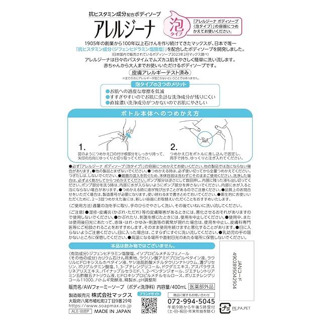 商品名:アレルジーナ 抗ヒスタミン成分配合 泡ボディソープ 本体+詰替+おまけ付