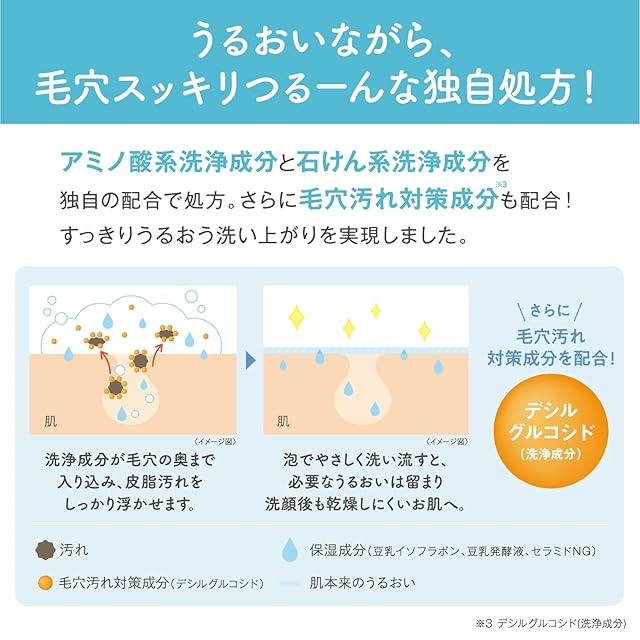 豆乳の濃密ミクロ泡洗顔。ミクロな泡で毛穴の奥まですっきりつるーん♪となめらかな素肌に洗いあげます。忙しい朝も簡単ワンプッシュで泡立ていらず!