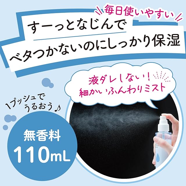 【塗り伸ばし不要でカンタン】ボトルを振らずにシュっと保湿♪液だれしない、ふんわり細かいミスト。