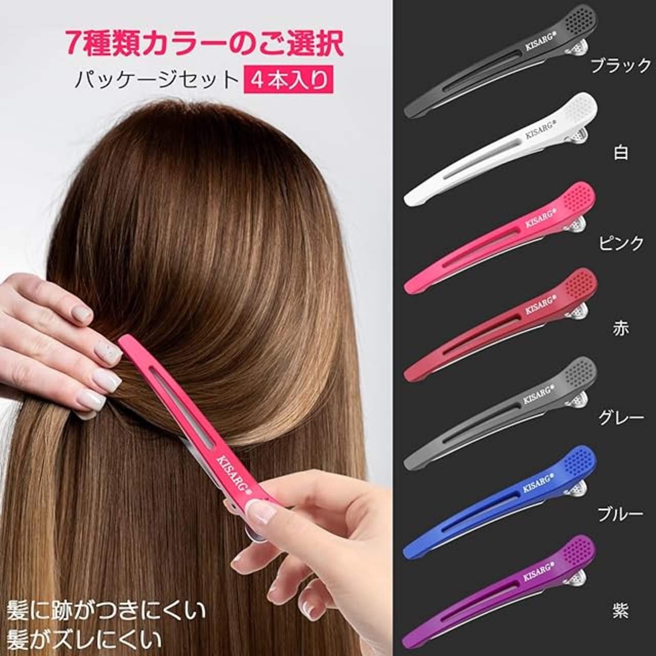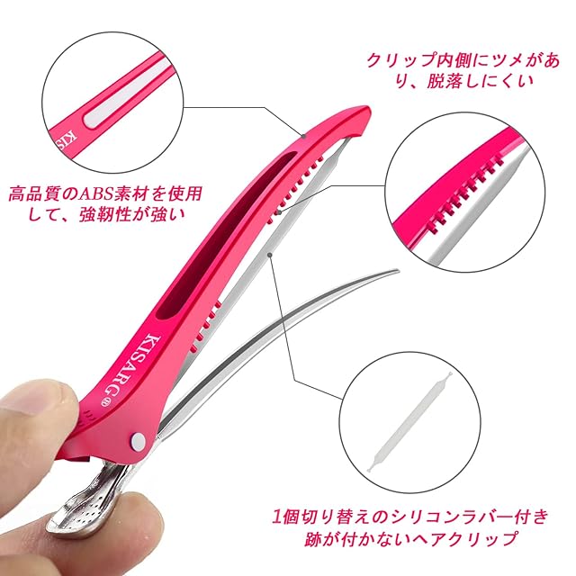 商品名:KISARG ダッカール ヘアピン ヘアクリップ メンズ 美容師 プロ用 前髪 髪留め クリップ ブロッキング 跡がつかない ヘア ピン 大きめ 4本入り 11.5cm ピンク