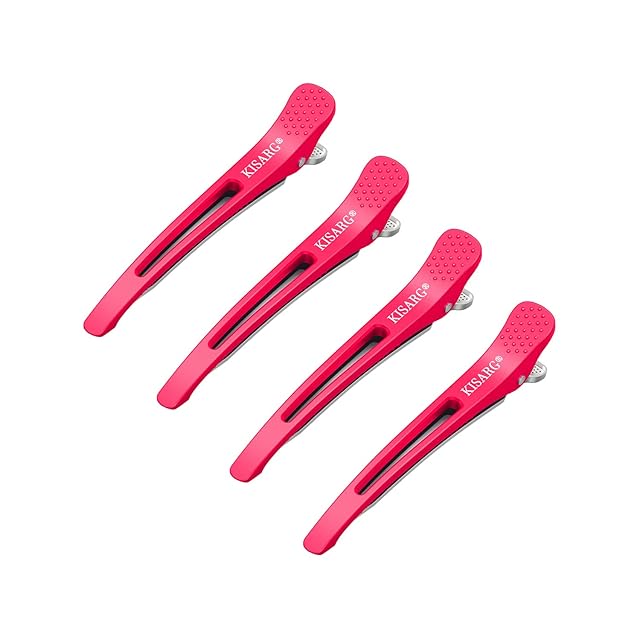 KISARG ダッカール ヘアピン ヘアクリップ メンズ 美容師 プロ用 前髪 髪留め クリップ ブロッキング 跡がつかない ヘア ピン 大きめ 4本入り 11.5cm ピンク
