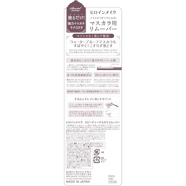 商品名:ヒロインメイクSP スピーディーマスカラリムーバーSK 6.6mL マスカラ用リムーバー 目にしみにくい処方 塗りやすいコーム型 ピンクボトル