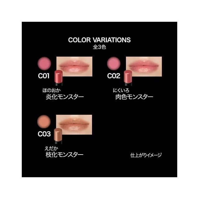 なじみ発色カラーで唇の色と同化するリップモンスター クリアトーン。長時間持続して落ちにくいリップ。