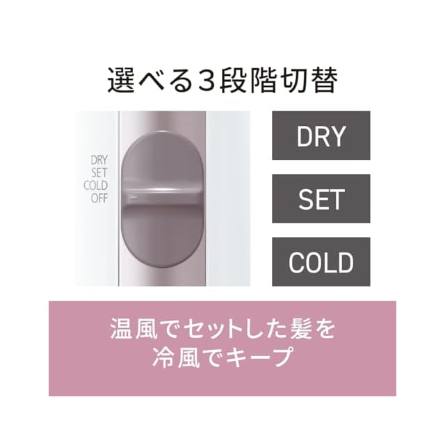 選べる3段階切替で、温風でセットした髪を冷風でキープする、プロのテクニックが簡単に
