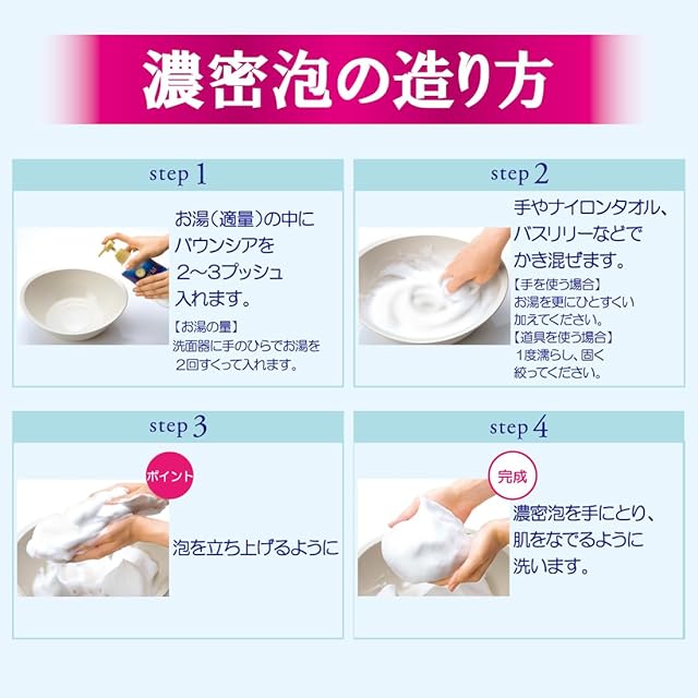原材料: 水、ミリスチン酸K、ラウリン酸K、パルミチン酸K、ジステアリン酸グリコール、塩化K、香料、ヒアルロン酸Na、加水分解コラーゲン、シア脂、コカミドメチルMEA、コカミドプロピルベタイン、ラウリルヒドロキシスルタイン、ラウレス硫酸Na、PEG-75、PEG-9M、PEG-20M、ポリクオタニウム-7、ポリクオタニウム-50、グリセリン、BG、EDTA-2Na、フェノキシエタノール
