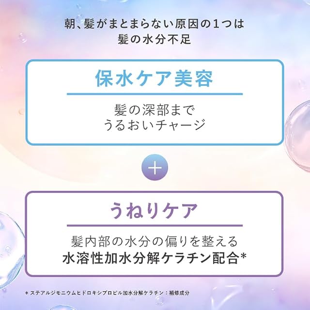 ✨【配合成分】髪内部にとどまる、ぷるぷる浸透ウォーターゼリー*¹配合。 *¹ スイゼンジノリエキス、アルギニン、グリセリン水溶液:保湿成分