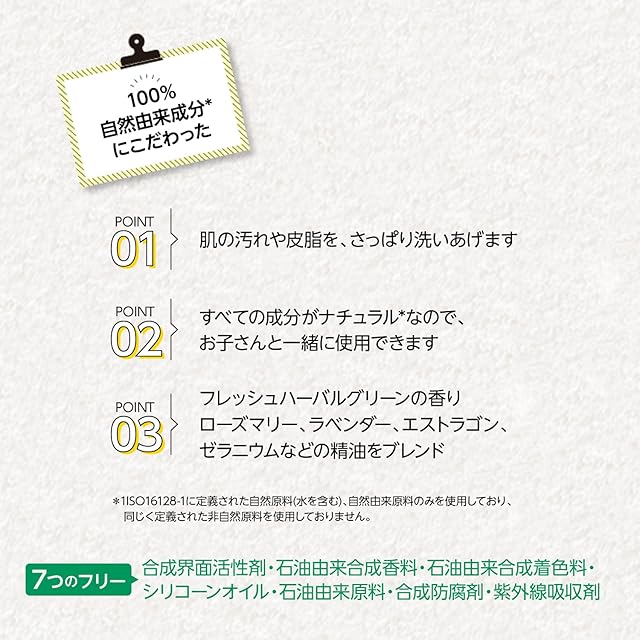 *ISO16128-1に定義された自然原料(水を含む)、自然由来原料のみを使用しており、同じく定義された非自然原料を使用していません。