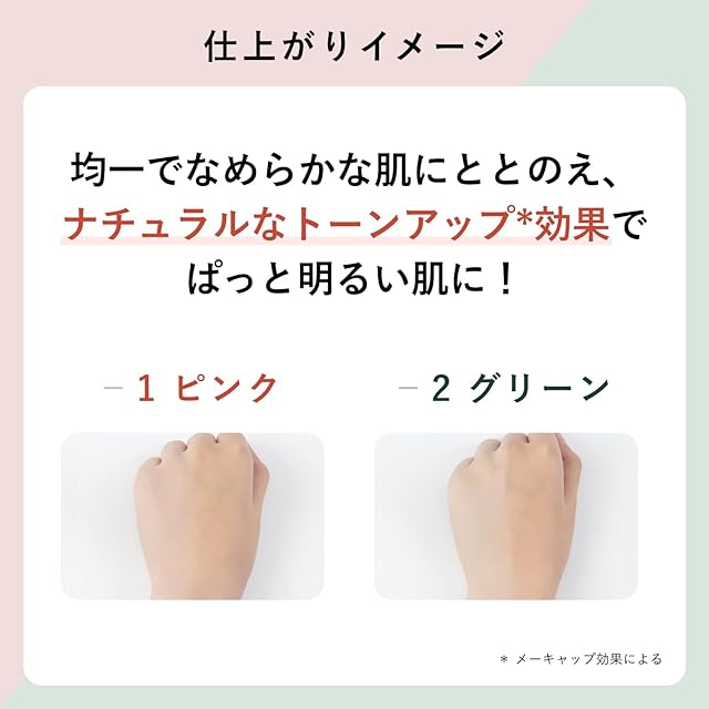 【トーンアップ効果】くすんだ肌色を明るくトーンアップして、自然にぱっと明るい肌へ仕上げる、色付きの化粧下地です。グリーンの下地で、透明感あふれる肌色に仕上がります。