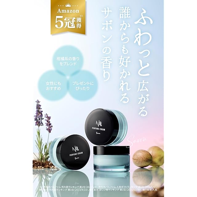 ランキング5冠獲得!ギフトにも大人気です。【香り】サボン【自然な香り】香水をつけたいけど、匂いが強すぎると気になる。そんな方に最適な練り香水( 男性用パルファム )。キツすぎない、自然で良い香りを漂わせる事ができます。【保湿もできる香水】香りだけではなく、保湿力も抜群。シアバター、カカオバターがお肌を乾燥から守ります。【UVケア】老化の原因となる紫外線からお肌を守ります【日本製】日本国内で製造された国産の香水クリームです。手首や首回りにそれぞれ0.3g(0.5~1cmほどの量)をおすすめしておりますが、香りの強さの好みもございますので、お好みでお試しいただけたらと思います。このような使用方法の場合、約3ヶ月もちます。
