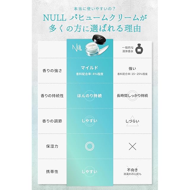 【ランキング5冠獲得!】 ■NULLフレグランスシリーズ70,000個突破!レビュー2,000件以上で内でも人気の練り香水!■香水ほどキツすぎず、さりげなく自然に香るのでメンズに人気!匂いがキツイから普段香水つけない方にもおすすめです。