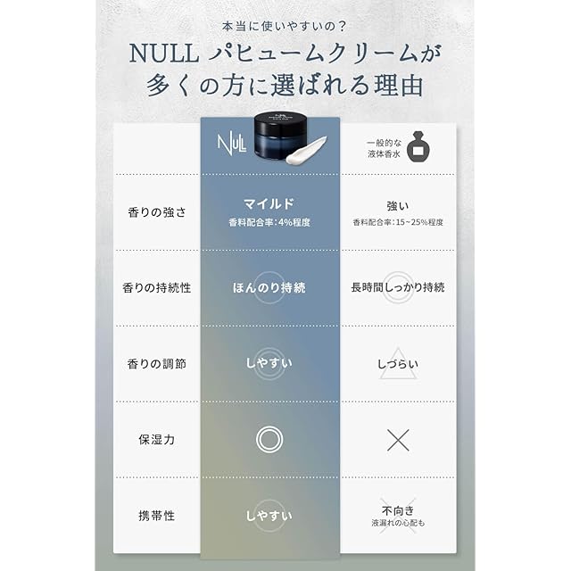 【ランキング5冠獲得!】 ■NULLフレグランスシリーズ50,000個突破!レビュー1,000件以上で内でも人気の練り香水!■香水ほどキツすぎず、さりげなく自然に香るのでメンズに人気!匂いがキツイから普段香水つけない方にもおすすめです。