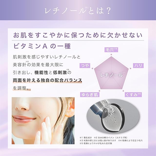 【美容成分】レチノールカクテル + エクソソーム配合。ナイアシンアミド、パンテノール、CICA、NMN、3種の成長因子等。