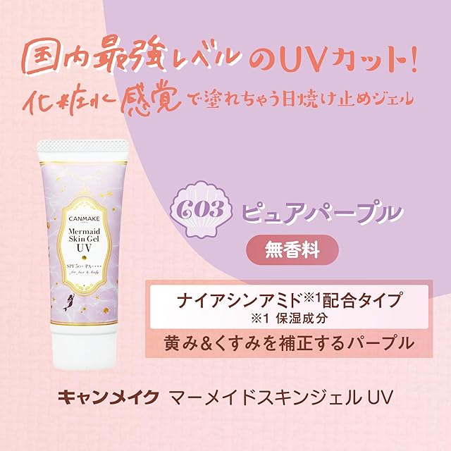 商品名:キャンメイク マーメイドスキンジェルUV C03 ピュアパープル 40g 日焼け止め ナイアシンアミド パープル SPF50+ PA++++ 洗顔料でオフ