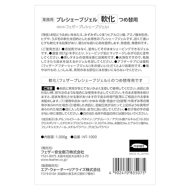 商品名:フェザー プレシェーブジェルh 軟化 (1000g)
