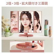 【2倍&3倍の拡大鏡付き】立体三面ミラーですのでお顔の正面だけでなく、横顔や顔全体をしっかり確認することができます。2倍&3倍の拡大鏡により、明るく細かい毛穴の状態を隅々までチェックでき、全体のバランスを確認しながら細やかな化粧をサポートしてくれます。