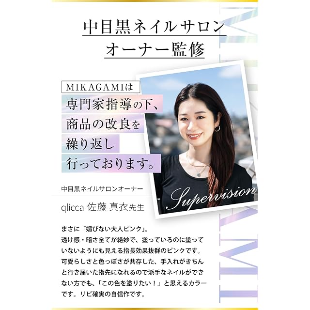 【高発色の日本製カラージェル】中目黒のネイルサロンオーナーが監修した、カラージェルです。 【単色でもデザインにも、楽しむ厳選の7カラー】自爪になじむシアーカラー5色とデザインに使える白と黒の計7色をご用意しました。 【セルフで仕上げる本格仕上げ】ブラシ付きのポリッシュ型ボトルを採用。跡がつきにくいハケで上手に塗れます。 【HEMAフリー処方】HEMAフリーなので、HEMAアレルギーの方にもご使用いただけます。 【使用方法】ベースジェルを塗り硬化した後、カラージェルを塗布します。トップジェルで仕上げてください。(目安:UV120秒、LED30秒)