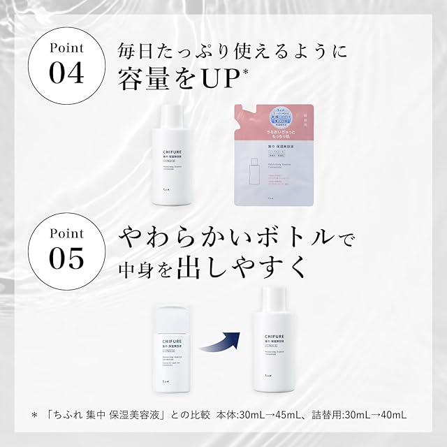 【乾燥肌を集中保湿ケア】3つのうるおい成分*配合で、乾燥による肌のカサつき・ゴワつきを集中保湿ケアする美容液です。(*保湿成分:ヒアルロン酸、トレハロース、ポリクオタニウム-51)