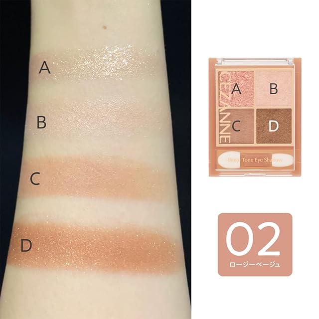 セザンヌ ベージュトーンアイシャドウ 02 ロージーベージュ 4.3g ラメ パール マット 4色アイシャドウ