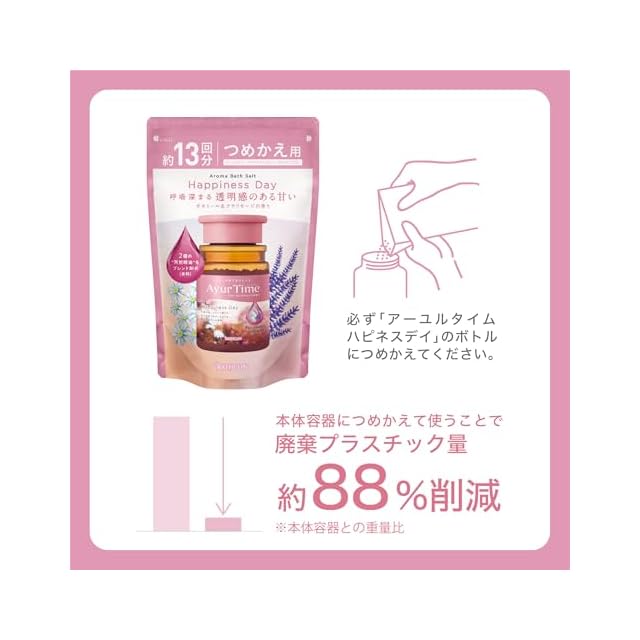 商品名:アーユルタイム ハピネスデイ バスソルト カモミール&クラリセージの香り つめかえ用 520g(約13回分) 天然精油