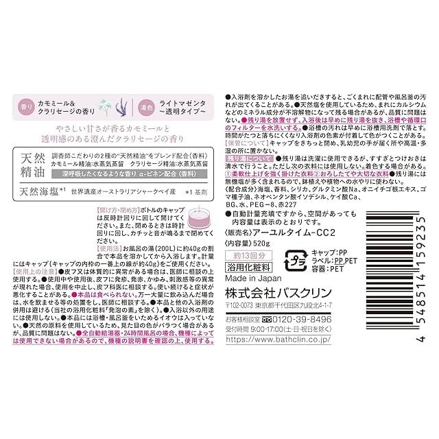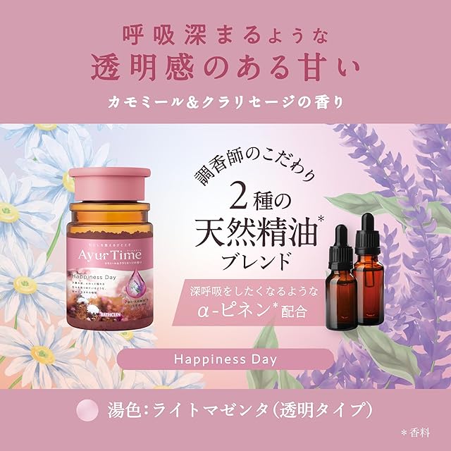 商品名:アーユルタイム ハピネスデイ バスソルト カモミール&クラリセージの香り 本体 ボトル 520g(約13回分) 天然精油