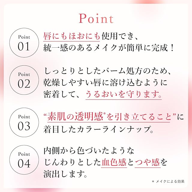 【1品でマルチに使える】唇にもほおにも使えます。簡単に統一感のあるメイクが完成します。