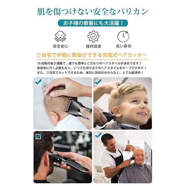 【最新改良版登場&切れ味抜群】業界バリカンの先駆者である弊社は品質にこだわり、従来のバリカンが抱えていた問題点を改善し、切れ味のよい45°鋭角刃を採用し、刃先段差が短いため、エリ足などの輪郭がよりはっきり仕上がります。また髪を逃しにくく、刈り残しを低減することでスピーディーにスタイリングできます。刃の先端は子供専用の良質なステンレス刃と優れたなR面取り刃設計で、滑らかで、剃り効率が高い、肝心な切れ味は素敵、さびなどの心配もなくので長持ちできます。カット性能が良く、髪に絡まずスムーズな切れ味です