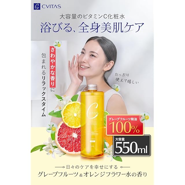 ✅ 大容量550mlのビタミンC化粧水。惜しみなく全身に使え、肌の角質層まで浸透してうるおいをキープ。乾燥や肌荒れを防ぎ、透明感のある肌へ導きます。
