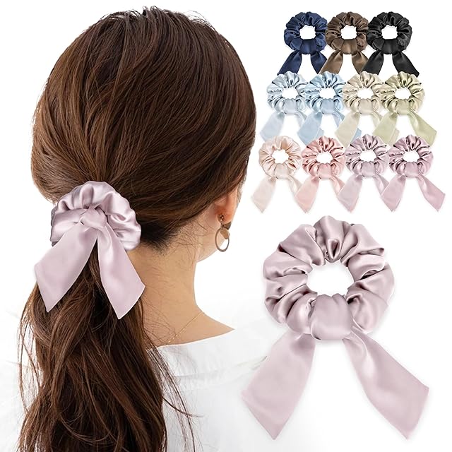 商品名:シルク ヘアゴム 【Poco'ce掲載・天然シルク100%・リボンシュシュ・11カラー展開】 シュシュ リボン 大きめ シルクヘアゴム 髪ゴム ゴム 跡がつかない 大人 黒 おしゃれ (Y34アッシュピンク(リボンヘアゴム))