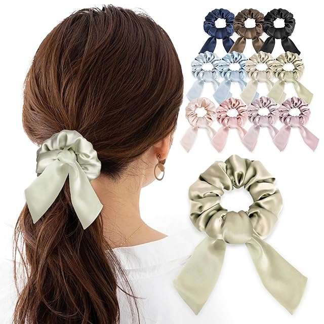 シルク ヘアゴム 【Poco'ce掲載・天然シルク100%・リボンシュシュ・11カラー展開】 シュシュ リボン 大きめ シルクヘアゴム 髪ゴム ゴム 跡がつかない 大人 黒 おしゃれ (Y41カーキ(リボンヘアゴム))