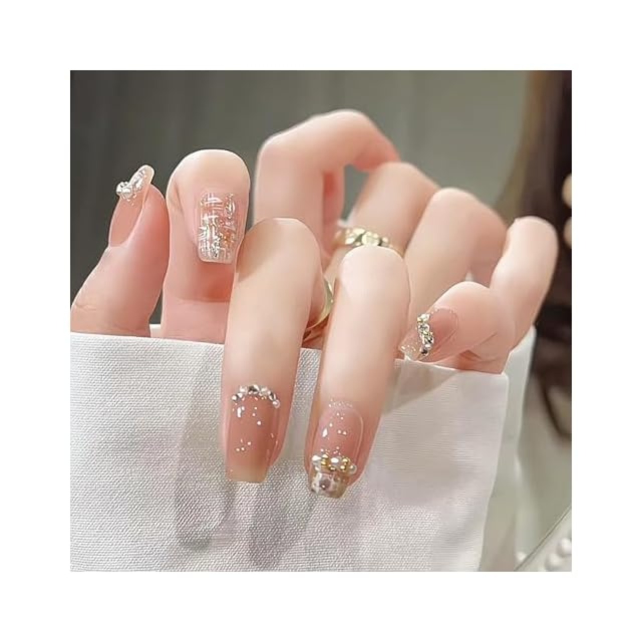 【リッチセット内容】この商品には24枚のセットが含まれており、予備用のネイルチップも一緒に提供されます。さらに、両面テープや爪やすり、木の棒もセットに含まれています。到着後すぐに使用できるので、お客様に便利です。さらに、両面テープに2秒間熱風をあてると、さらにしっかりと貼り付けることができます。