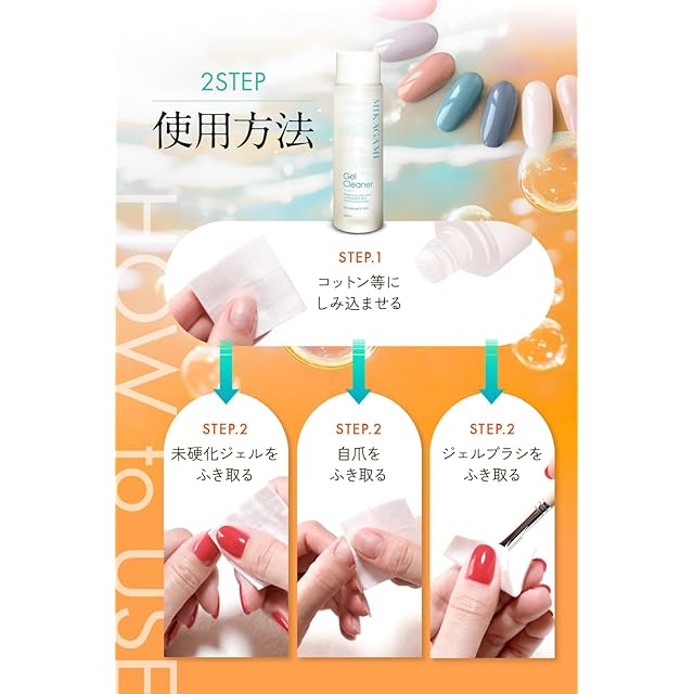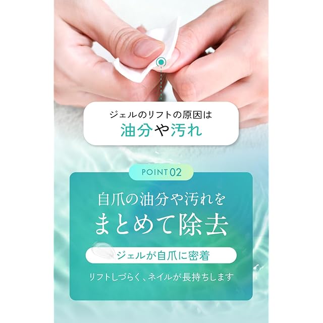 【汚れ、油分除去にも】ジェルのリフトの原因となる、自爪の汚れや油分を拭き取ります。