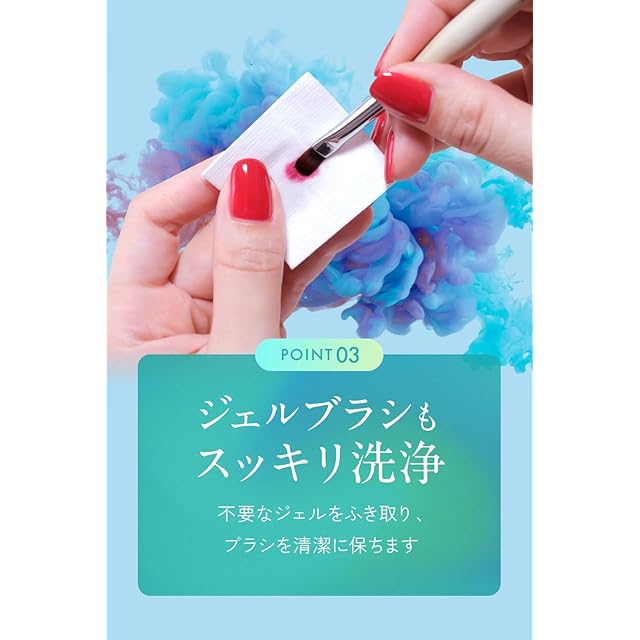 【ジェルブラシもスッキリ洗浄】ジェルブラシに残った不要なジェルの拭き取りに。ブラシを清潔に保ちます。