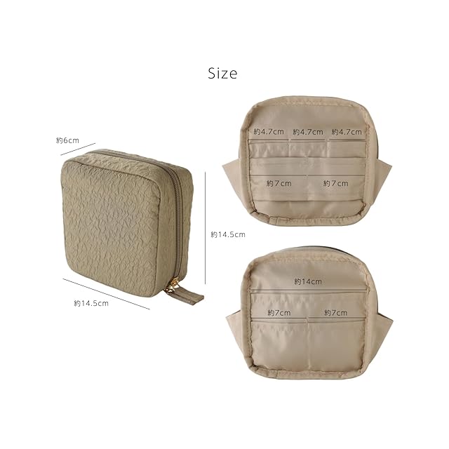 ✅【大きく開いて探しやすい】横約14.5cm 高さ約14.5cm 奥行約6cmとなっております。軽量でコンパクトでありながらチャック部分がフルで開くので、どこにいったかなとなることはありません。またサイド部分には中身が落ちにくいように設計しております。仕分けがしっかりできる機能性抜群コスメポーチです。