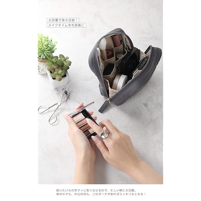 ✅【大容量で楽々収納】使いたいものをサッと取り出せるので、忙しい朝に大活躍。家の中でも外出の時も、このポーチがあればスッキリまとまります。パウダー、下地、ビューラー、ハイライトなどの大きめのコスメから、マスカラやリップやブラシという縦長のコスメも常に持ち歩く日焼け止めやファンデーションもしっかり収納可能です。