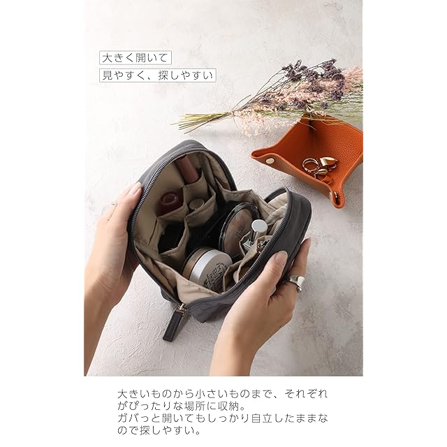 ✅【大きく開いて探しやすい】横約14.5cm 高さ約14.5cm 奥行約6cmとなっております。軽量でコンパクトでありながらチャック部分がフルで開くので、どこにいったかなとなることはありません。またサイド部分には中身が落ちにくいように設計しております。仕分けがしっかりできる機能性抜群コスメポーチです。
