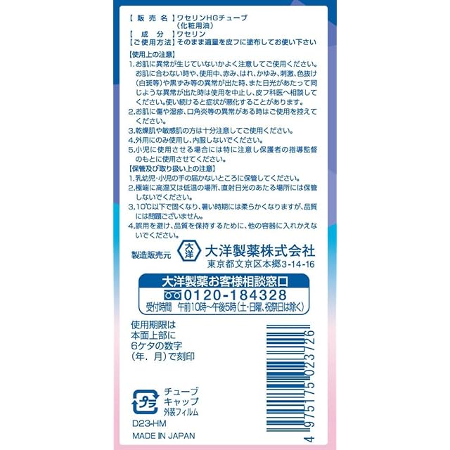 商品名:大洋製薬 ワセリンHGチューブ100G
