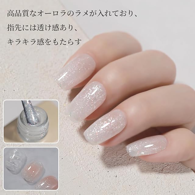 商品名:Coikaze ラメジェル 単色 キラメキ ポログラム ラメ入りジェル ラメ 細かい 大粒 クリア アートジェル グリッタージェル ジェルネイル カラー ポリッシュ 眩い輝き キラキラジェル FL07スノーオーロラ
