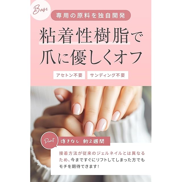 ✨【ピールベースについて】 リフトしづらい、だけど爪を傷めずにきれいに剥がせるベースジェル。エタノールやリムーバー、キューティクルオイル等を使わなくてもキレイに剥がせるので、自爪を傷めない!