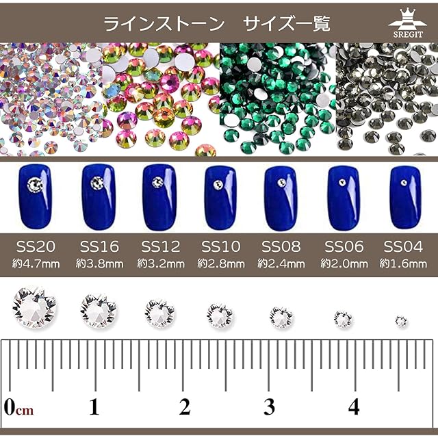 【内容量】:ラインストーン/1カラー・1サイズ(計1300粒以上)【カラー】 クリア / クリアAB / ジェットブラック / クリアグレー / ライトパープル / パープル / ライトグリーン / エメラルド / ライトブルー / サファイアブルー / シャンパン / ゴールドイエロー / スモークトパーズ / オーロラ