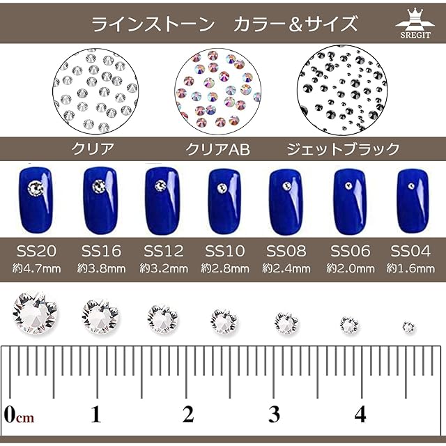 商品名:SREGIT ラインストーン ネイルパーツ 【キラキラ輝く】 ガラス ネイル デコ パーツ 大容量 (SS12/約3.2mm, クリア)