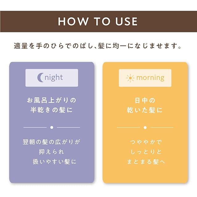 天然毛髪保護成分のアボガドオイルが素早く広がりをおさえるのと同時に「補修・保湿・保護」して髪の広がる原因からガードします。うるおいを与え、一日中まとまりのよい髪が持続します。